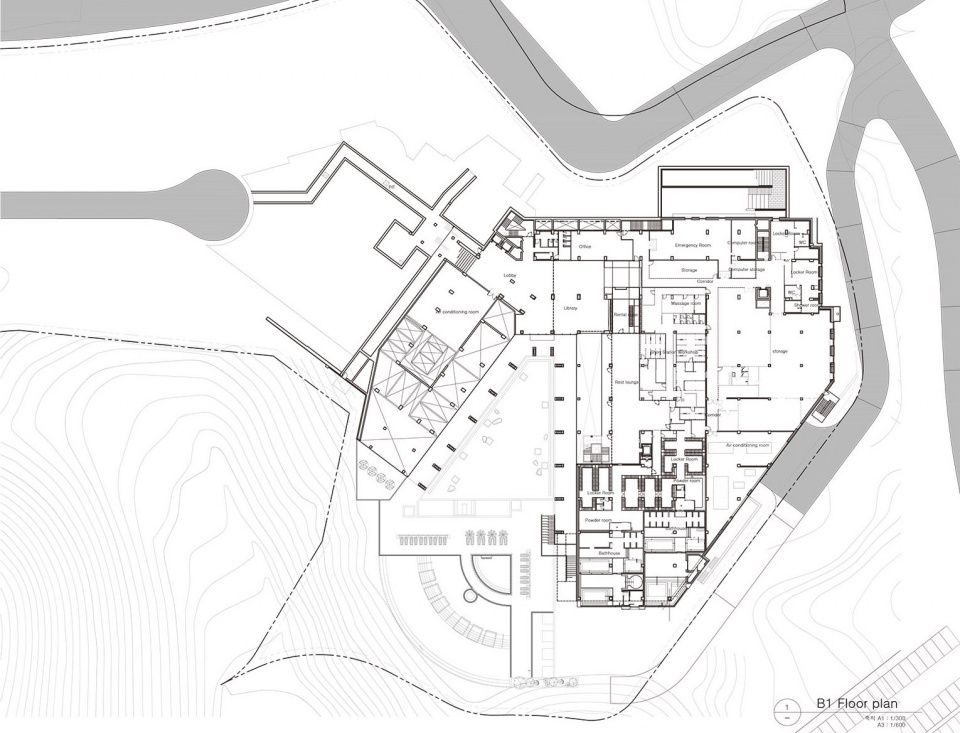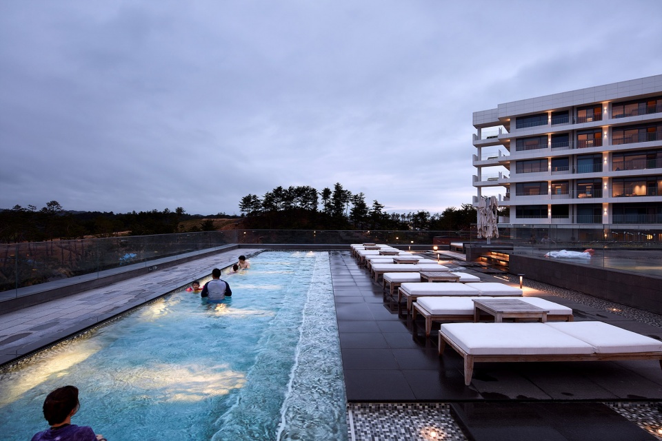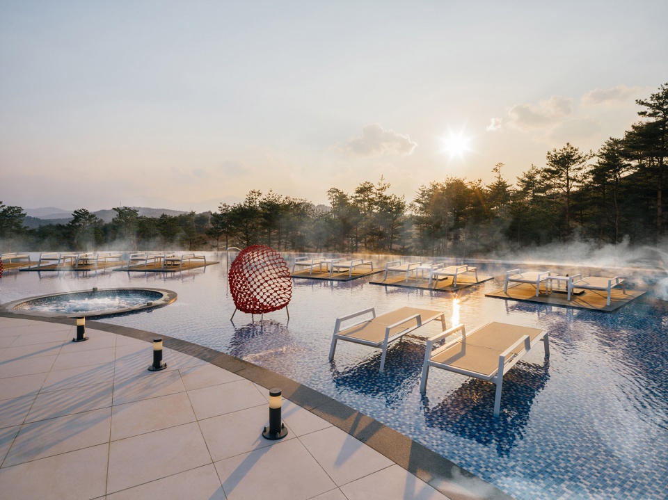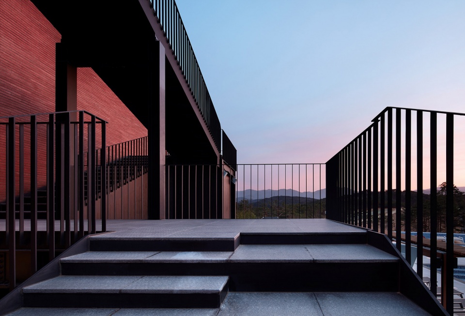 温泉酒店顶层是一间拥有极佳景观视野的公共活动大厅,这里是整个度假村中独一无二的观景胜地,客人们可以在这里观赏到日出的美景。景观是整个项目设计中最为重要的考虑因素之一,旨在保证人们在室内空间中依然能够欣赏江原道的美丽山景与风景。