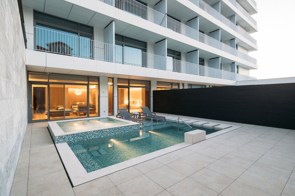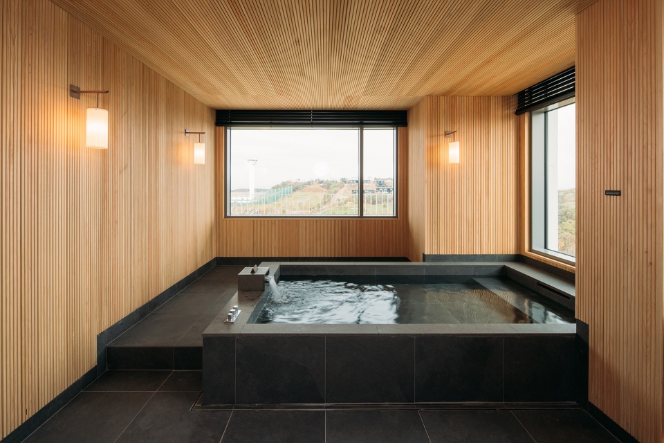 标准的客房共有两个部分,分别为一间带有露台与落地窗的宽敞客厅,以及一处独特的温泉浴室。温泉浴室的布局种类尤为丰富,为旅客们提供了个性化的选择。从建筑设计的角度来看,本项目中设有一间颠覆人们传统概念的豪华温泉浴室,一系列可以自由进出客厅的宽敞露台,一处让人想要狂欢畅饮的开放式厨房,还有一间能够让人感受到传统氛围的茶室。