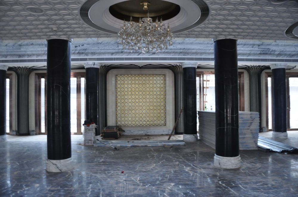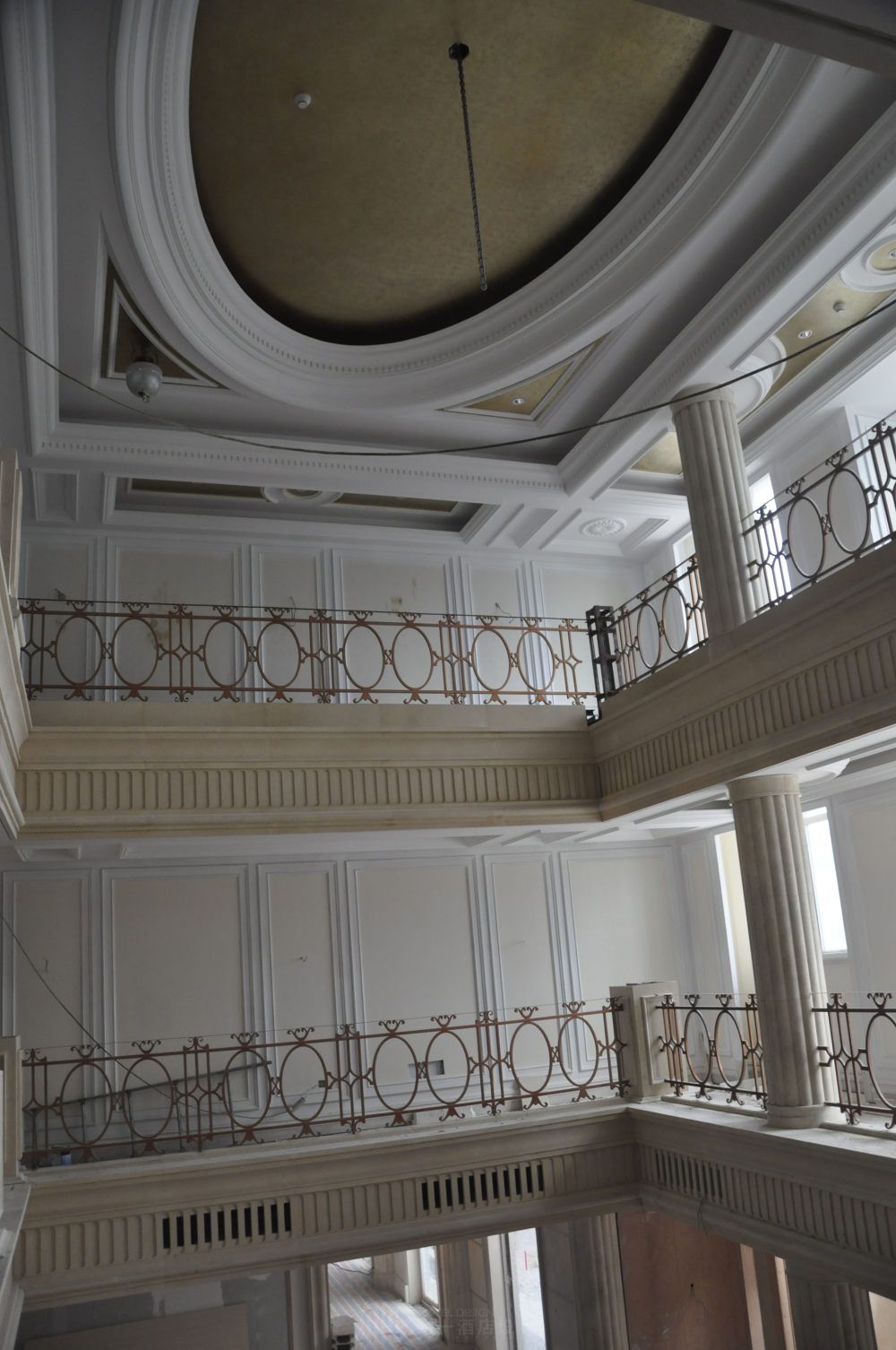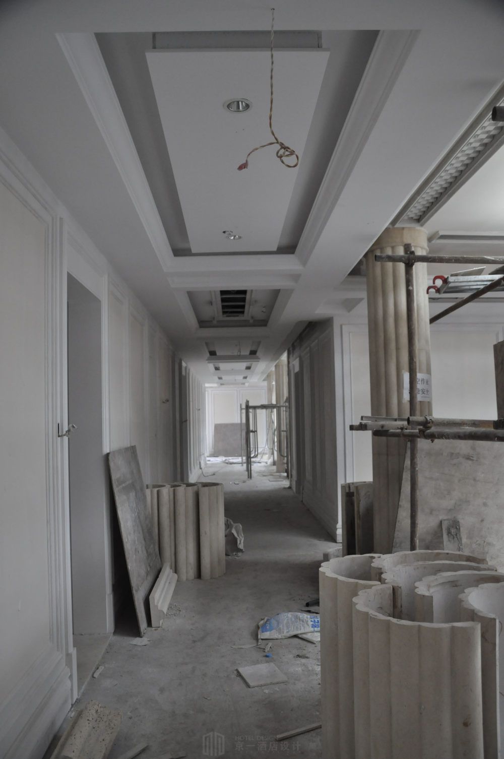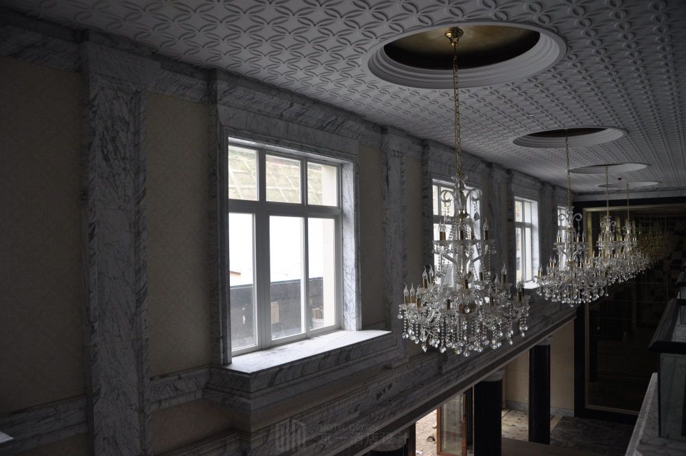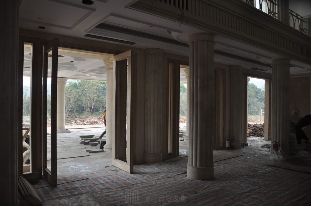 扶风历史文化悠久,旅游资源丰富,佛教名刹法门寺在世界佛教文化中占据崇高地位,法门寺地宫更是出土了众多珍宝和珍贵的佛指舍利。本案由宴会厅和客房组成,宴会厅是一千多平米的超大宴会厅。如此巨大的宴会厅很难把控材质色彩,太单一的话会显得空洞死板,太繁复的话又不好做把控。还 需要考虑门窗尺寸和灯光照明,设计中任何不恰当的地方都会造成整体设计的不和谐。