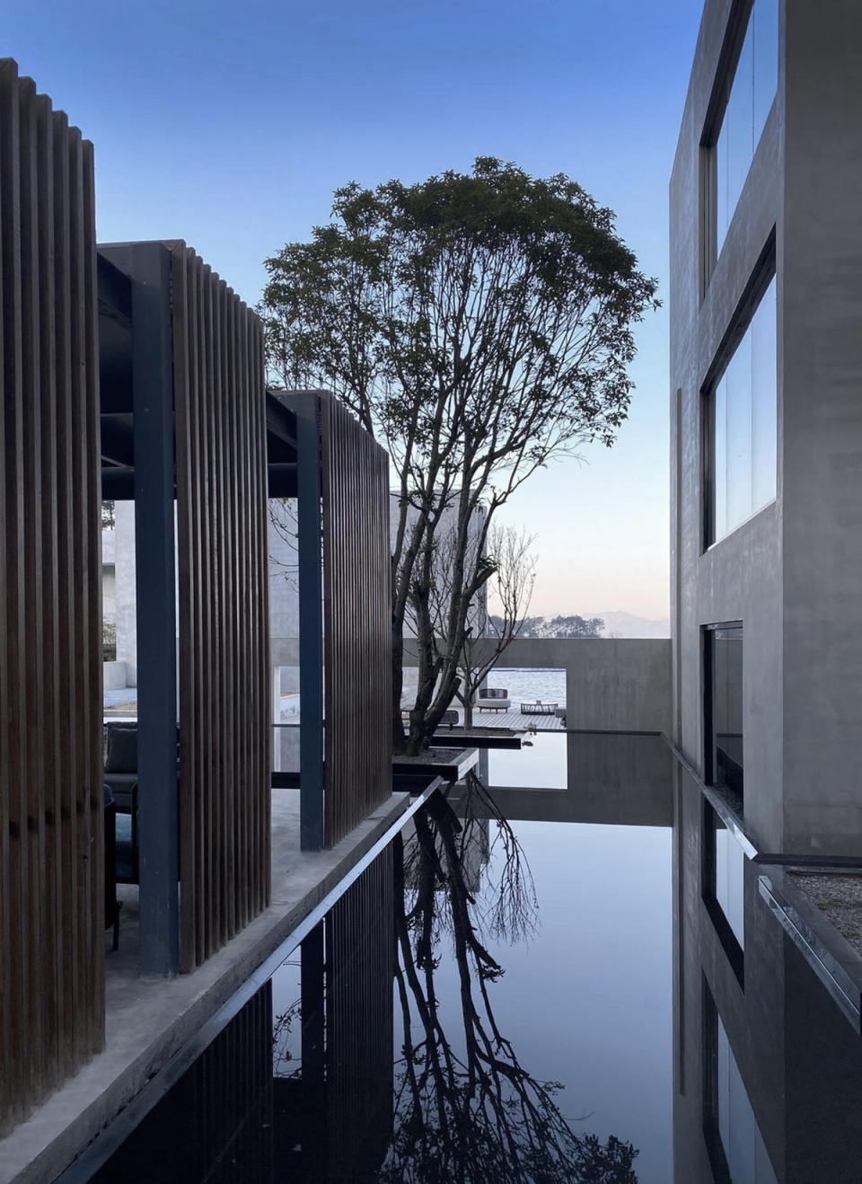 酒店用一种极具东方气质的谦逊收敛,回应着建筑应如何与自然和谐。几何结构空间的理性是对建筑的降噪,剥离繁复的留白是“无为,不争”的平和意境。