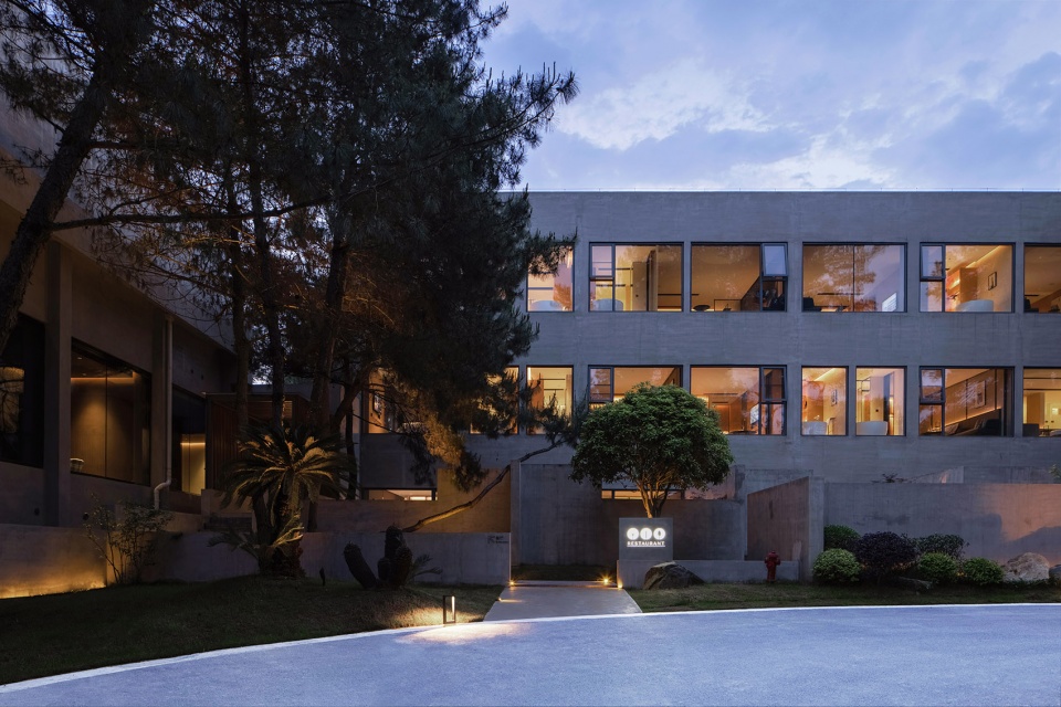 在酒店规划上,酒店退公路10米而居,退繁华,而入山水,用以减少来往车流的嘈杂,亦更贴近“奢隐”的调性与设计风格。