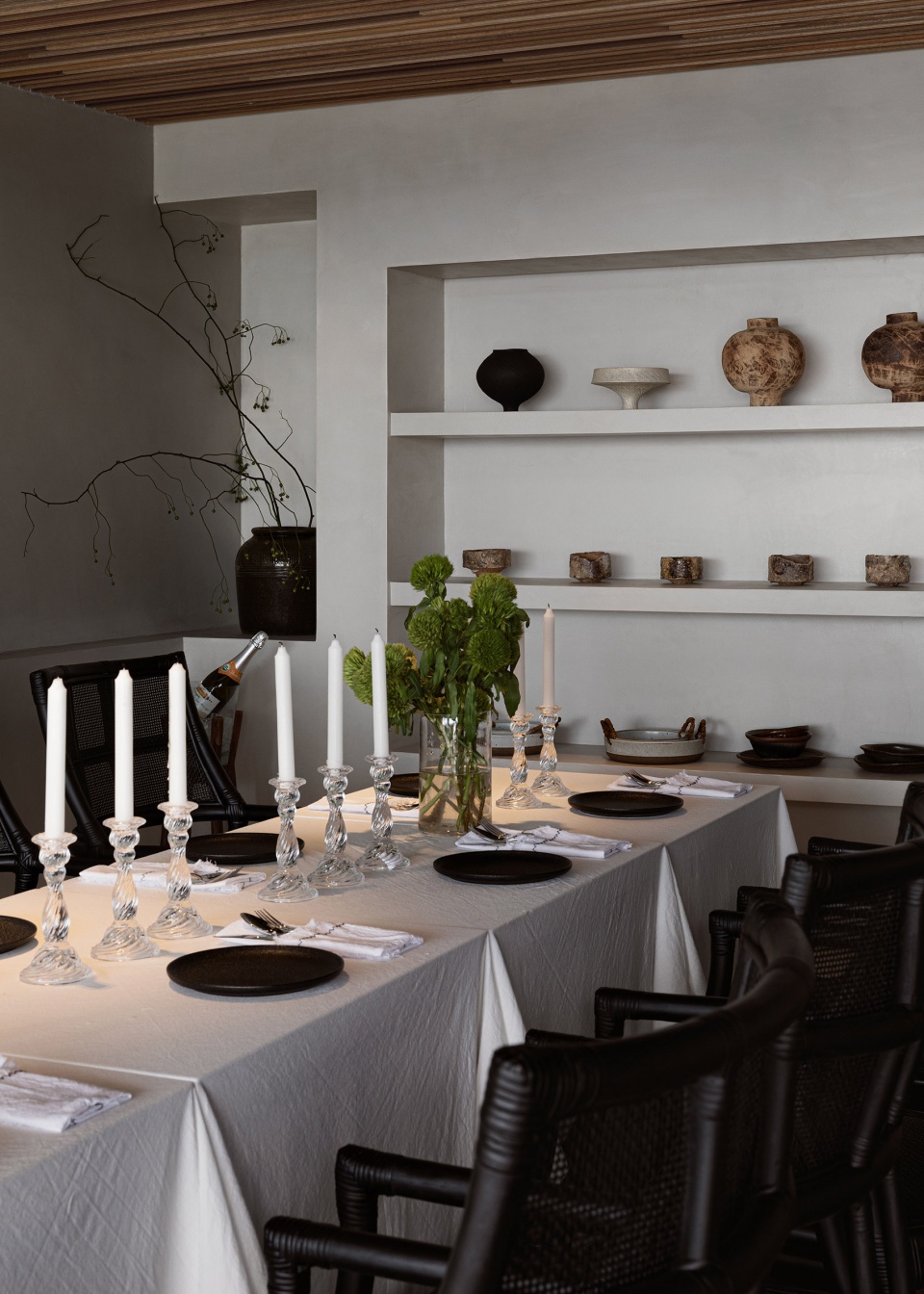 随着建筑曲线,人并着光影一同流入接待区。不同于传统的区域划分,蜚声将接待区的大理石台面延伸至酒吧岛台,空间的“和而不同”便在这里得到了充分展现。