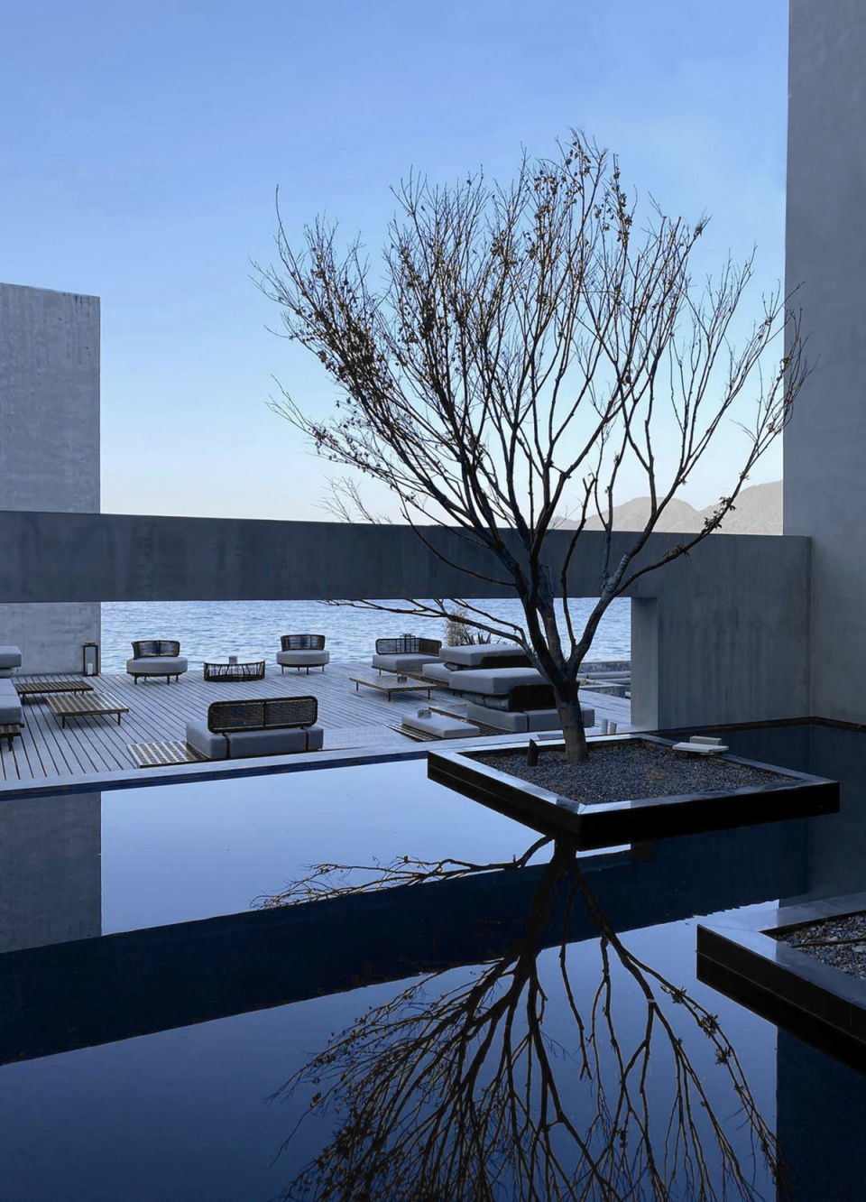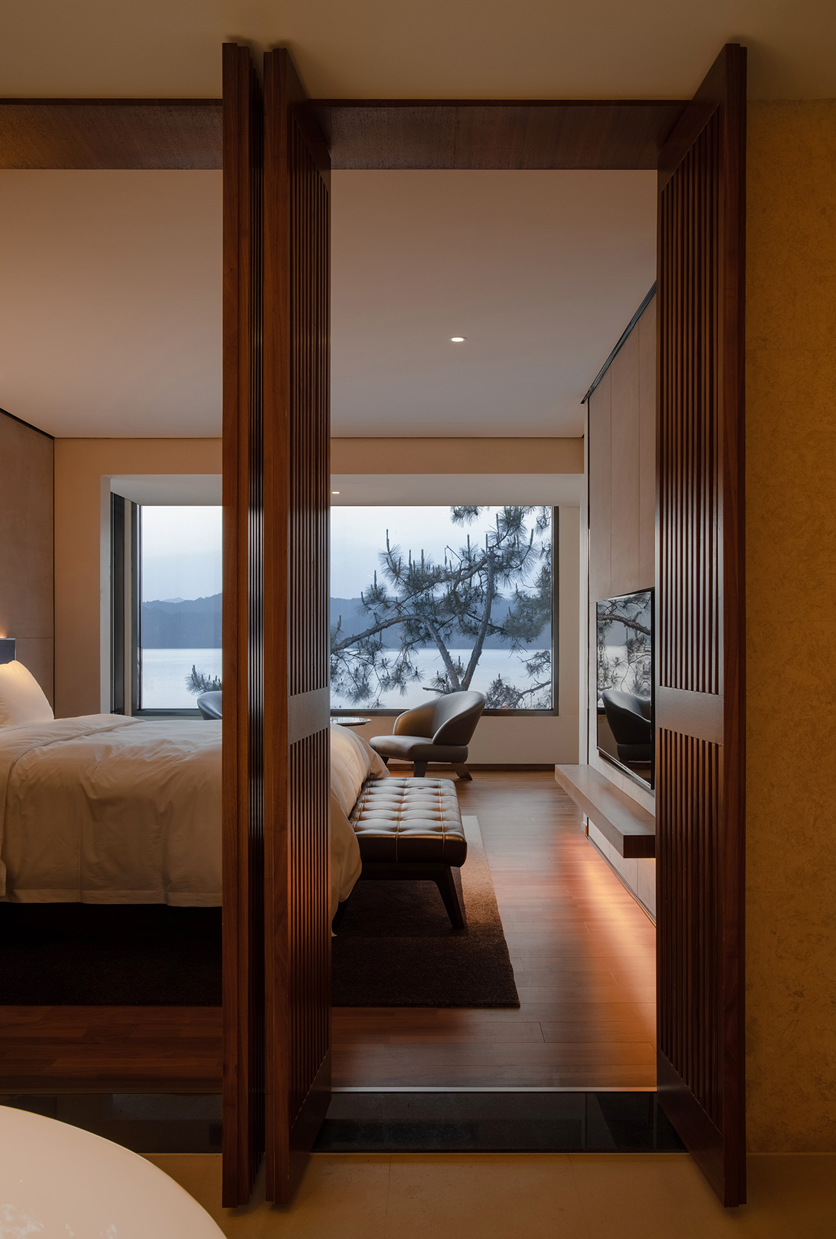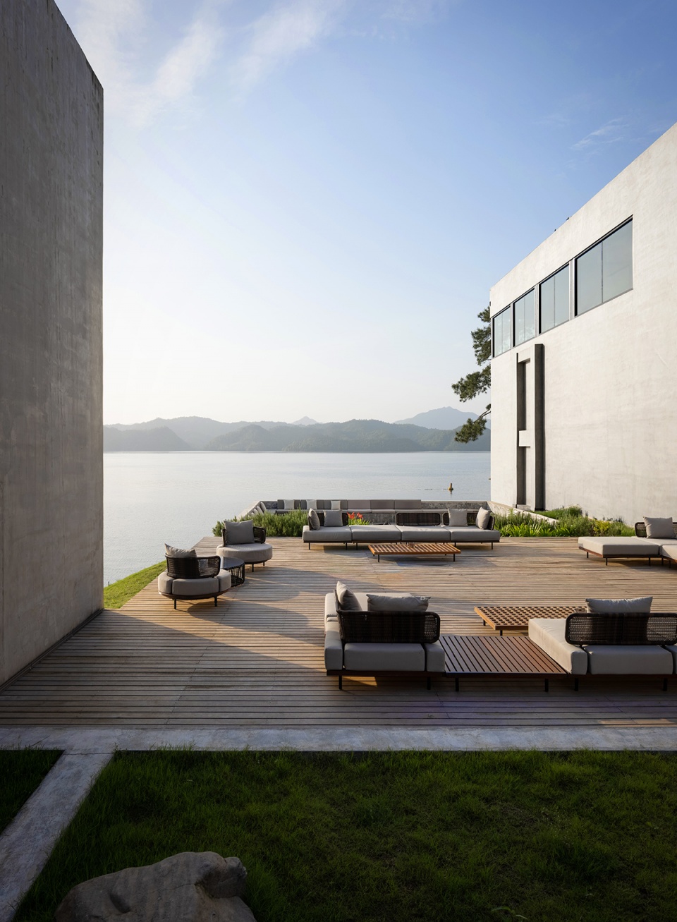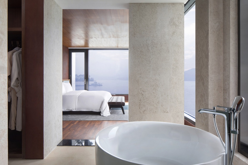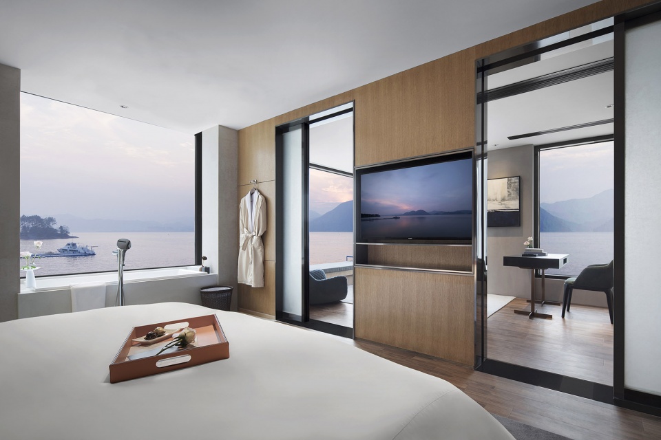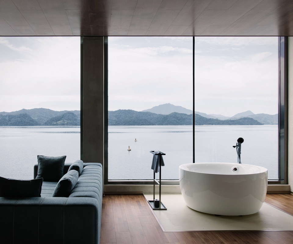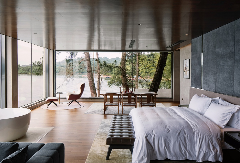 依偎着湖的山水澄澈,酒店成为“东方极简”设计哲学最为浪漫的诠释,也是设计师对于山水自然最为含蓄的情感表达。