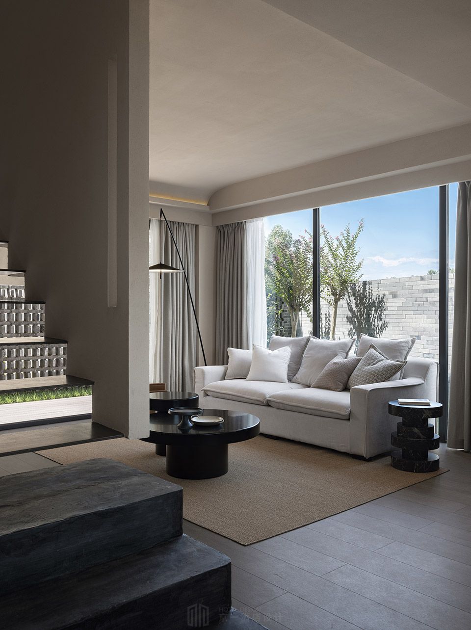 但凡用心,必然平淡中见惊奇。基于建筑的可持续性与环保性,拉近人与空间的距离,让材质本身去呼吸。设计师耗费大量时间与供应商协作研发用砂石与当地特殊石子混合的方式制作新型椒墙涂料。耐腐耐潮,温润自然,融入于本土环境,共生共息。